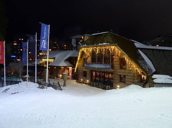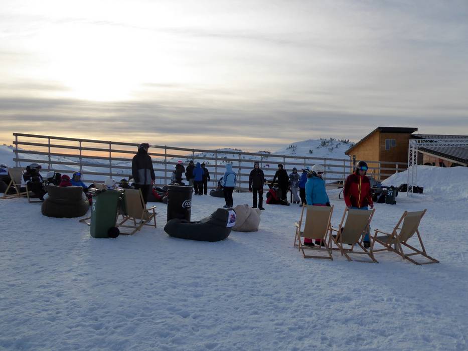 Op de top kun je de skidag afsluiten voor de Olimp Bar met een DJ en luide muziek. Maar om 16.00 uur moet je naar het dal afdalen.