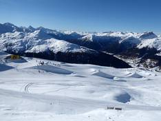 Panorama van het skigebied Jakobshorn Uitzicht vanaf de Jakobshorn
