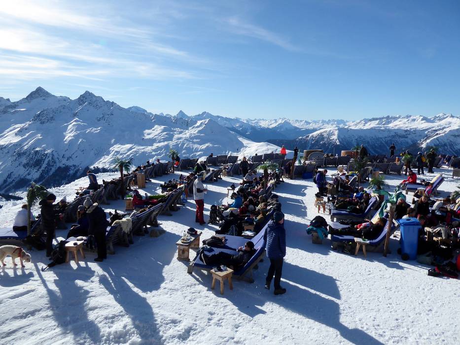 De Jatzhütte is een gezellige partyhut met een groot zonneterras. Onder palmbomen kun je ontspannen in ligstoelen met vachten en strandstoelen, of dansen op de beats van internationale dj’s. Daarnaast zijn er buiten whirlpools met uitzicht op de bergen. Wie er eenmaal is geweest, komt altijd terug.