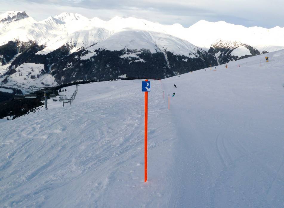 Oriëntatie (pistekaart, informatieborden, bewegwijzering piste) en veiligheid in het skigebied Jakobshorn (Davos Klosters)