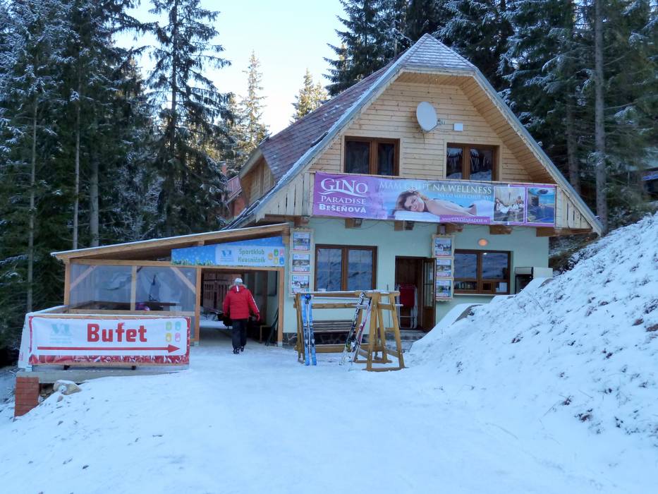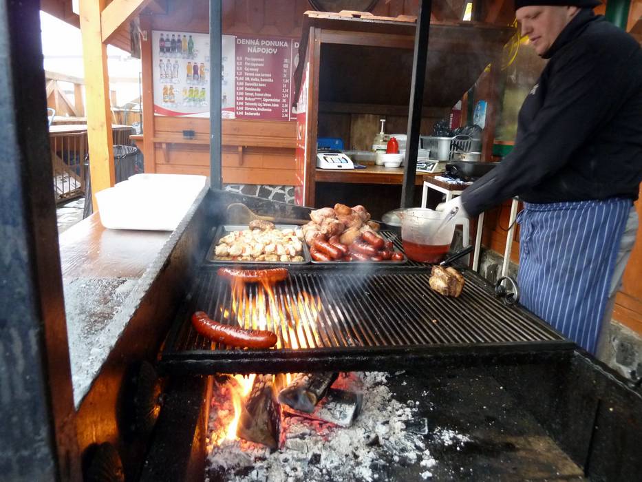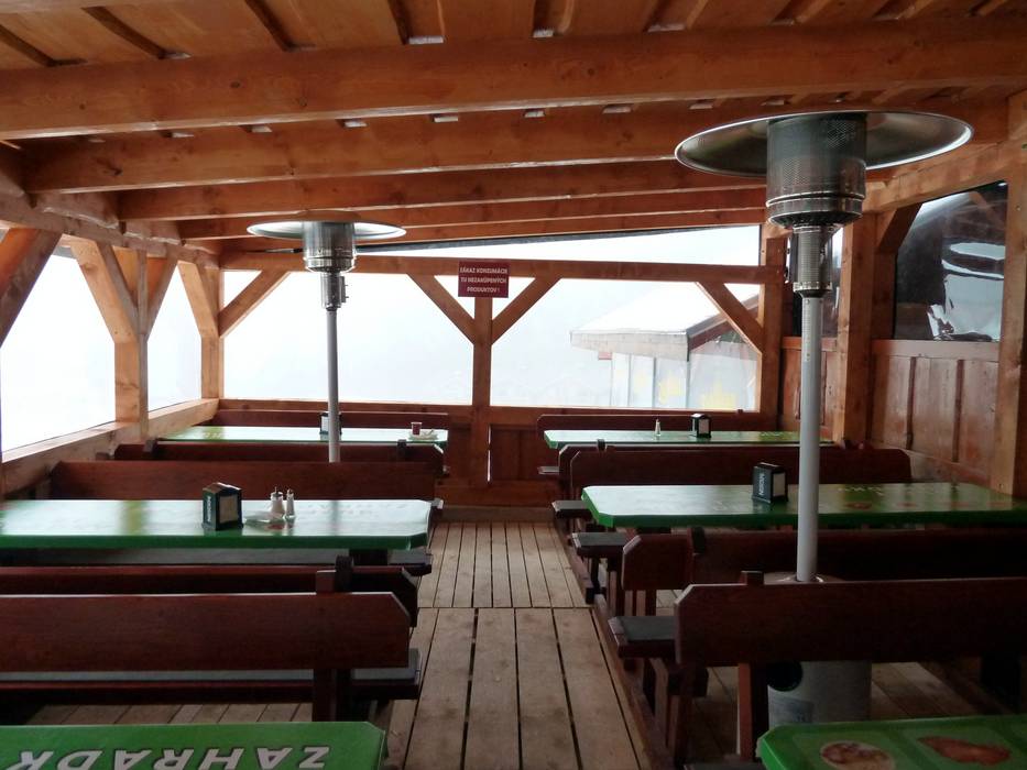 Het Bufet Záhradky is een rustieke houten hut met houten banken, en je kunt ook buiten onder de parasols met een warmtestraler zitten. Hier wordt nog op open vuur gegrild en er zijn typische Slowaakse specialiteiten.