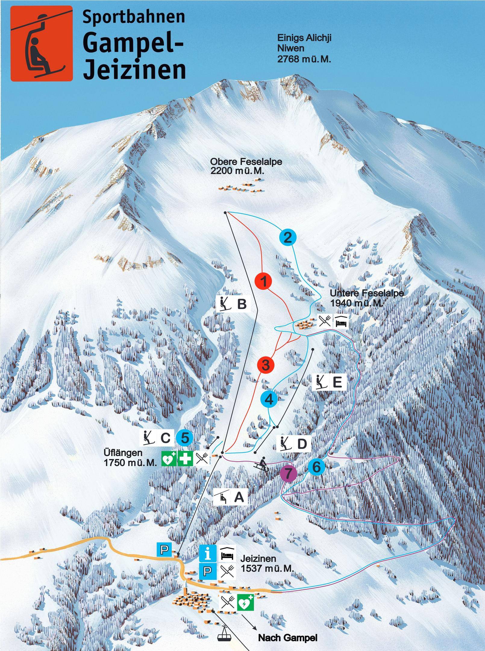 Pistekaart Jeizinen Feselalp – Gampel/Steg seizoen 2024/2025
