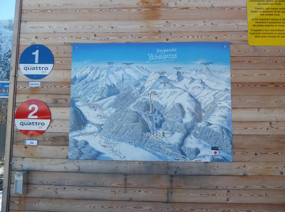 Bij het dalstation van de Jöchelspitzbahn vind je een grote pistekaart met informatie over de geopende pistes. De pistes zelf zijn allemaal zeer goed gemarkeerd en bewegwijzerd.