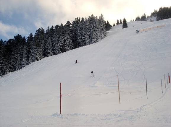 Er zijn geen moeilijke pistes, slechts twee korte donkerrode pistes parallel aan de Sorgschrofenliften in het bovenste gedeelte. Je hebt echter wel de mogelijkheid om een uitstapje in de diepe sneeuw te maken.