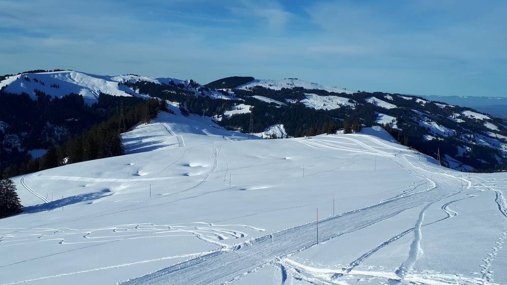 Vanaf het bergstation kun je nu te voet of met sneeuwschoenen genieten van het prachtige uitzicht. De ronde duurt ongeveer 45 minuten vanaf het bergstation en is als een rondweg aangelegd. Daarna kun je in het Berghaus Riggisalp genieten van een heerlijke fondue of andere maaltijden.2018/2019
