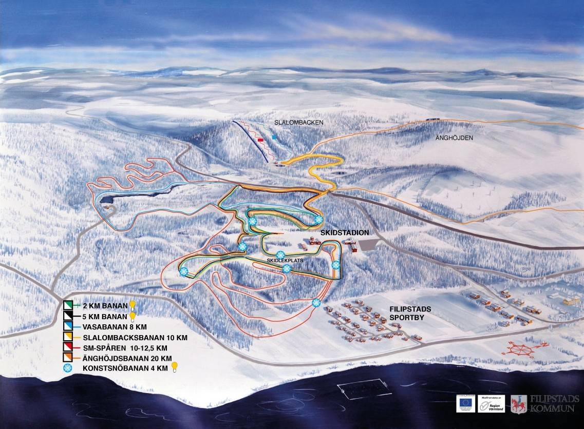 Pistekaart van het skigebied Kalhyttan/​Dammshöjden – Filipstad