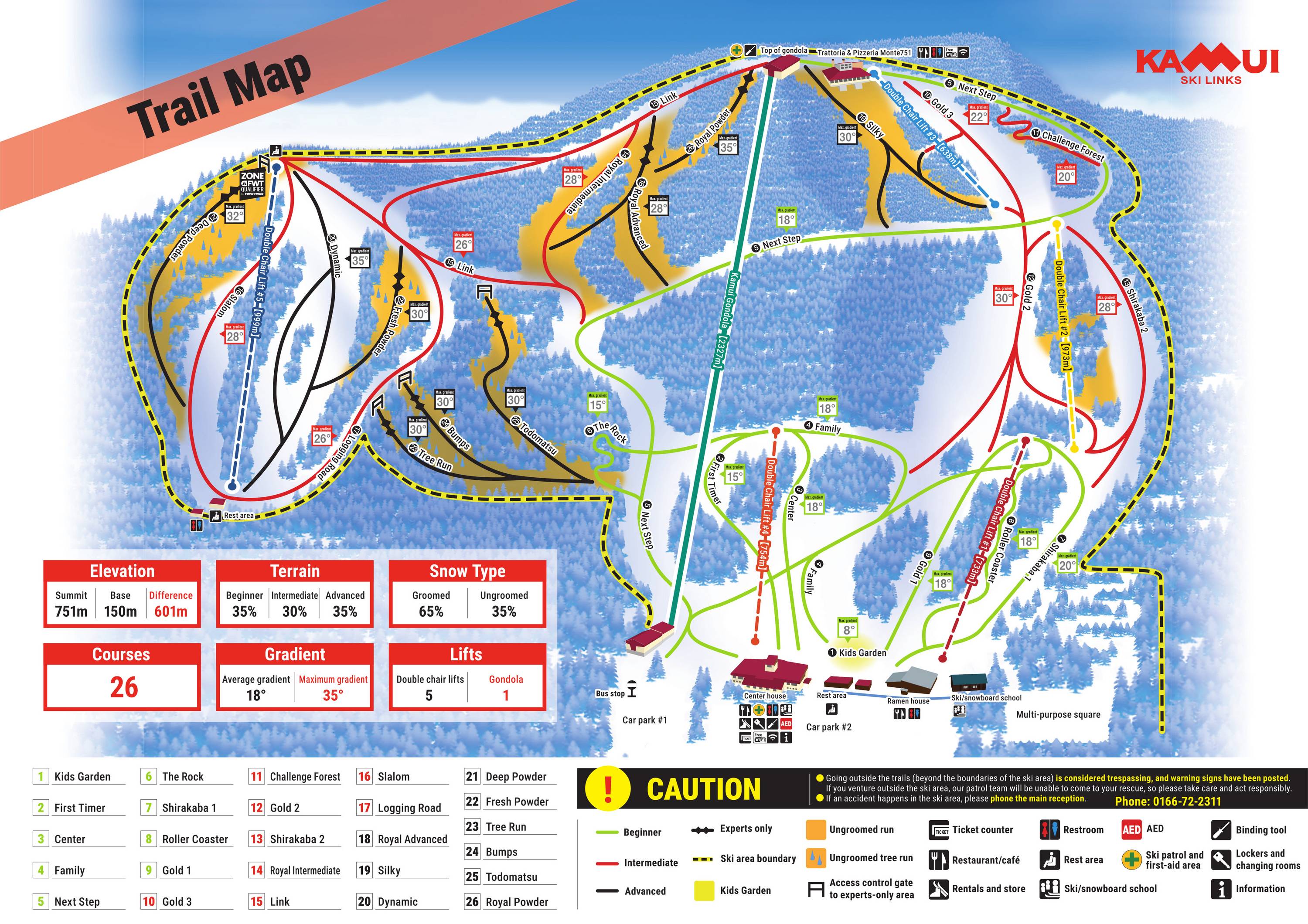 Pistekaart Kamui Ski Links seizoen 2025/2026