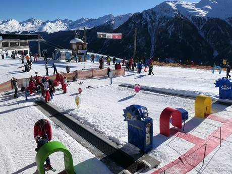 Het avonturenpark bij het bergstation van de 10-persoons gondelbaan Dias biedt een zeer aantrekkelijk en ruim oefenterrein op sneeuwzekere 1.830 meter hoogte. Meerdere overdekte en niet-overdekte tovertapijten, de Sunny Waveline, de Sunny Funline, het kinder-oefenterrein, het poortbogen-terrein, de golvende helling, de buckelpiste en de skicarrousel zorgen voor veel plezier bij families en kinderen in Kappl. De skischool en de kinderopvang voor gasten bevinden zich hier ook direct. Een perfect kinderparadijs!