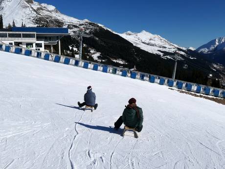 De 6 km lange rodelbaan naar het dalstation is plezier voor het hele gezin. De comfortabele rit omhoog gaat met de 10-persoons gondelbaan Dias.