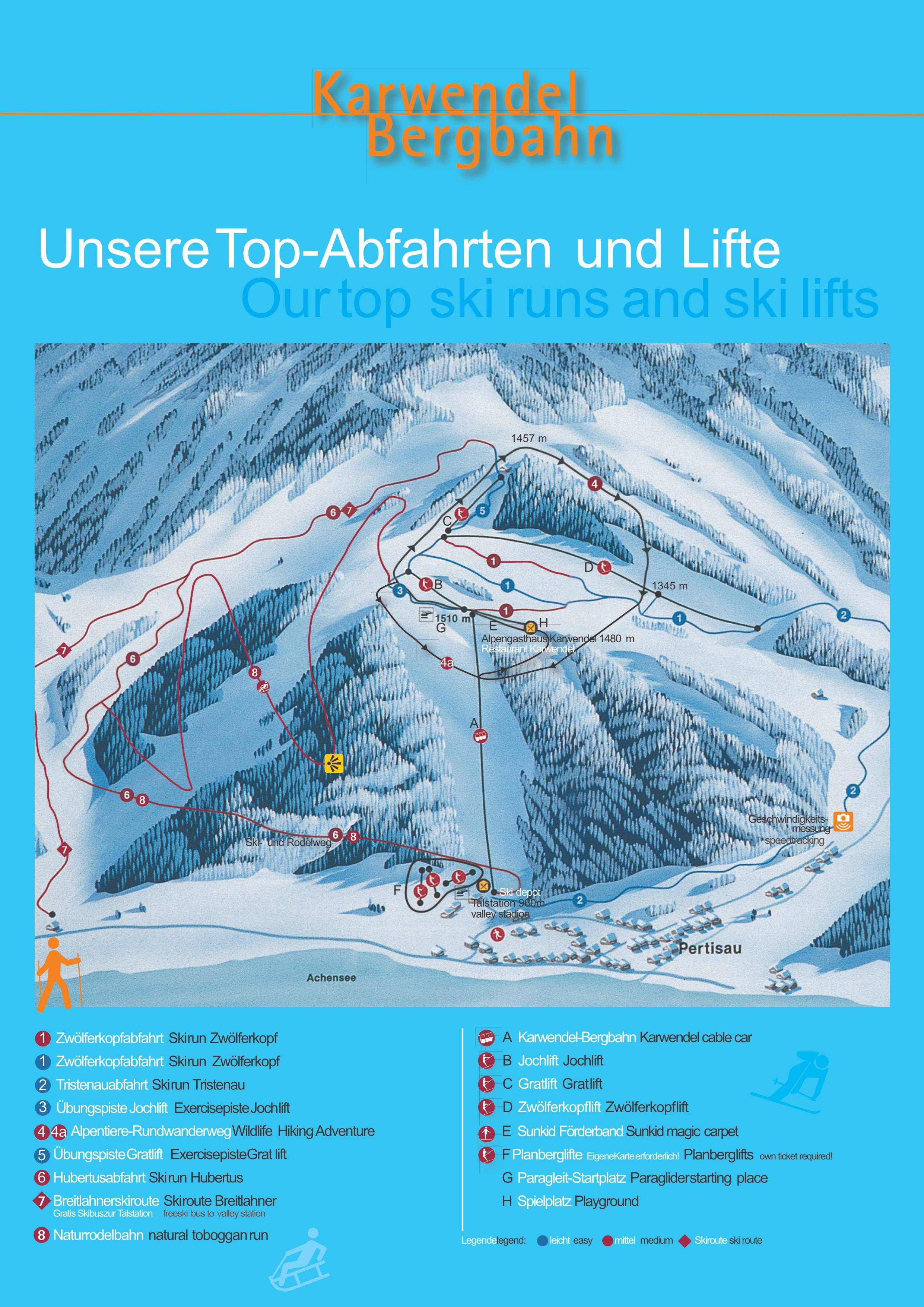Pistekaart Karwendel Bergbahn (Zwölferkopf) – Pertisau