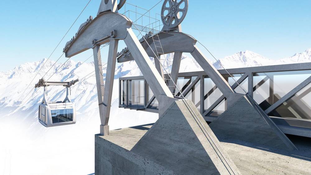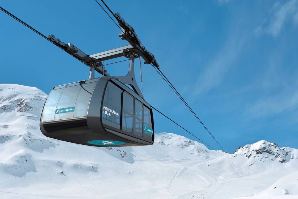 100-persoons Funifor - windvaste cabinelift met brede kabelgeleiding