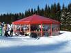 Vlak voor de parkeerplaats bij het dalstation van de stoeltjeslift Dámska wacht een après-skischirmbar op de gasten.