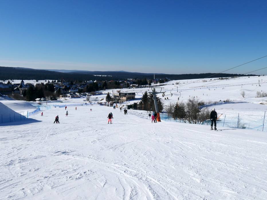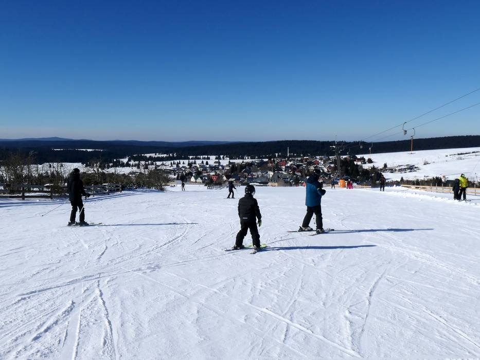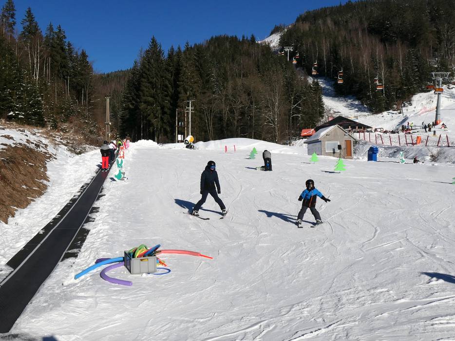 In het dorp Boží Dar ontsluiten meerdere sleepliften bijzonder brede, eenvoudige pistes met een gelijkmatige helling – ideaal voor beginners.