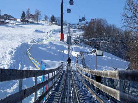 Op de Langwiedboden op 1976 m wacht mascotte Bobo op de kinderen in het Kinderland van de skischool Oberschneider. Als de pinguïn even niet in de buurt is, leren kinderen skiën op de skicarrousel en de sleeplift.