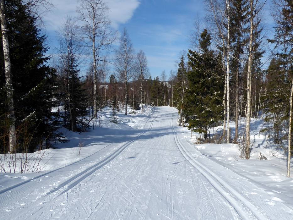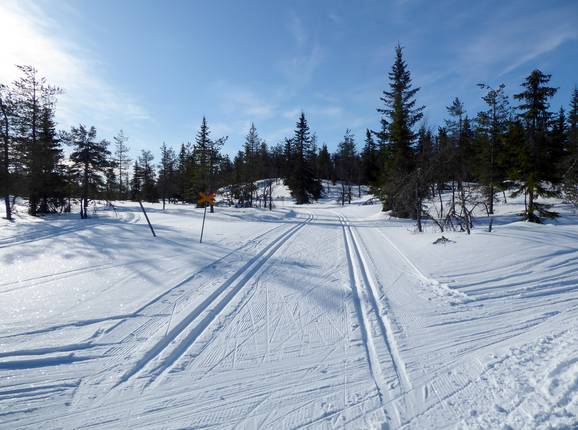 Kläppens mooiste loipe start bij het bergstation van de gondelbaan en loopt langs de top. Er is een aansluiting op de Bergspåret loipe.