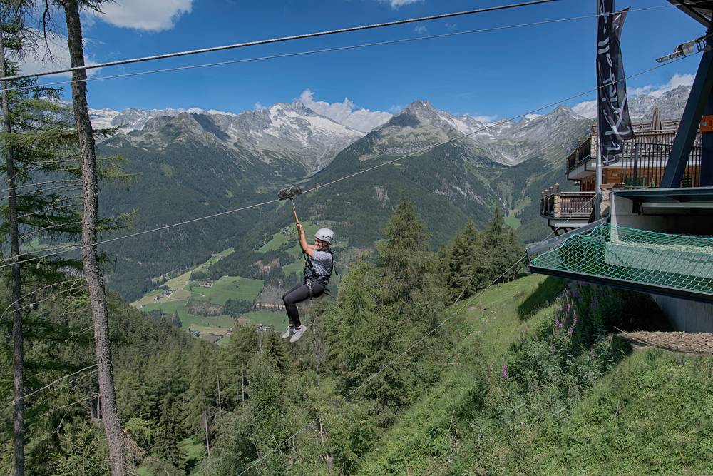 Kippenvel, hoogteroes, adrenalineboost. Gegarandeerd! Nieuwsgierig? Dan bent u in de Skiarena Klausberg aan het juiste adres. Gordels om en gaan – de nieuwe Klausberg Zipline wacht op u. Adembenemend en niets voor watjes!Met de zipline zweeft u als een adelaar over de zogenaamde „Brugga-Klomme“. Vanaf de Kristallalm stort u zich in een roes van snelheid compromisloos richting Almboden. Iets voor de echte adrenalinejunkies onder ons en voor degenen die het willen worden.