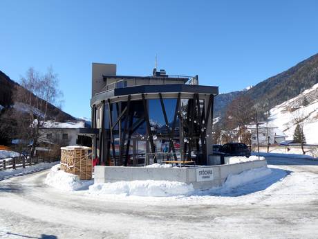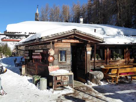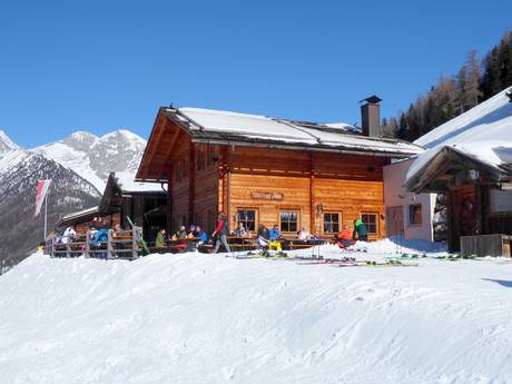 De skihut in Tiroolse stijl is smaakvol ingericht met veel oud hout en oude foto's. Op de bovenste verdieping worden in het à-la-carterestaurant typische specialiteiten uit het Ahrntal en Zuid-Tirol bereid. In de lounge geniet je van een drankje. Op de middelste verdieping is er een zelfbedieningsrestaurant en op de benedenverdieping zijn er stuben voor groepen.