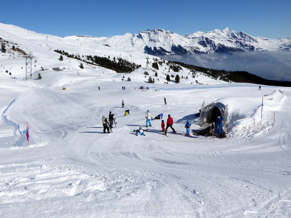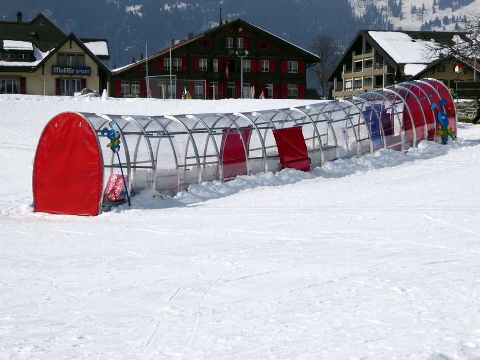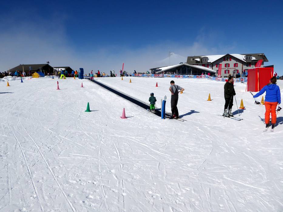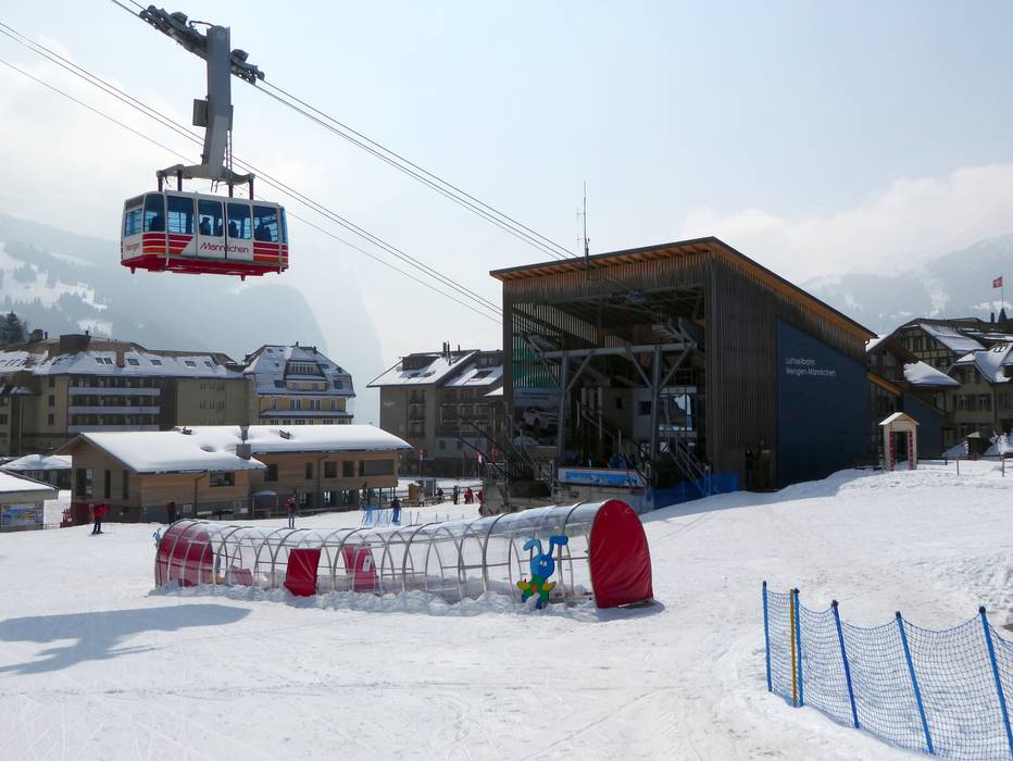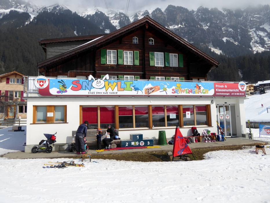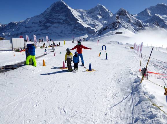 Het oefenterrein met transportbanden (waarvan één overdekt) bevindt zich direct bij het dalstation van de kabelbaan in Wengen. Veel leuke hulpmiddelen maken de eerste bochten in de sneeuw gemakkelijker. Soms verschijnt ook de mascotte "Snowli" op het oefenterrein. In het skischoolgebouw, direct aan het oefenterrein, kunnen de kleintjes weer uitrusten en opwarmen.