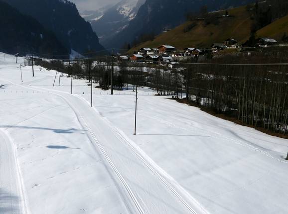 De loipe loopt van Grindelwald Grund naar de Gletscherschlucht en weer terug.