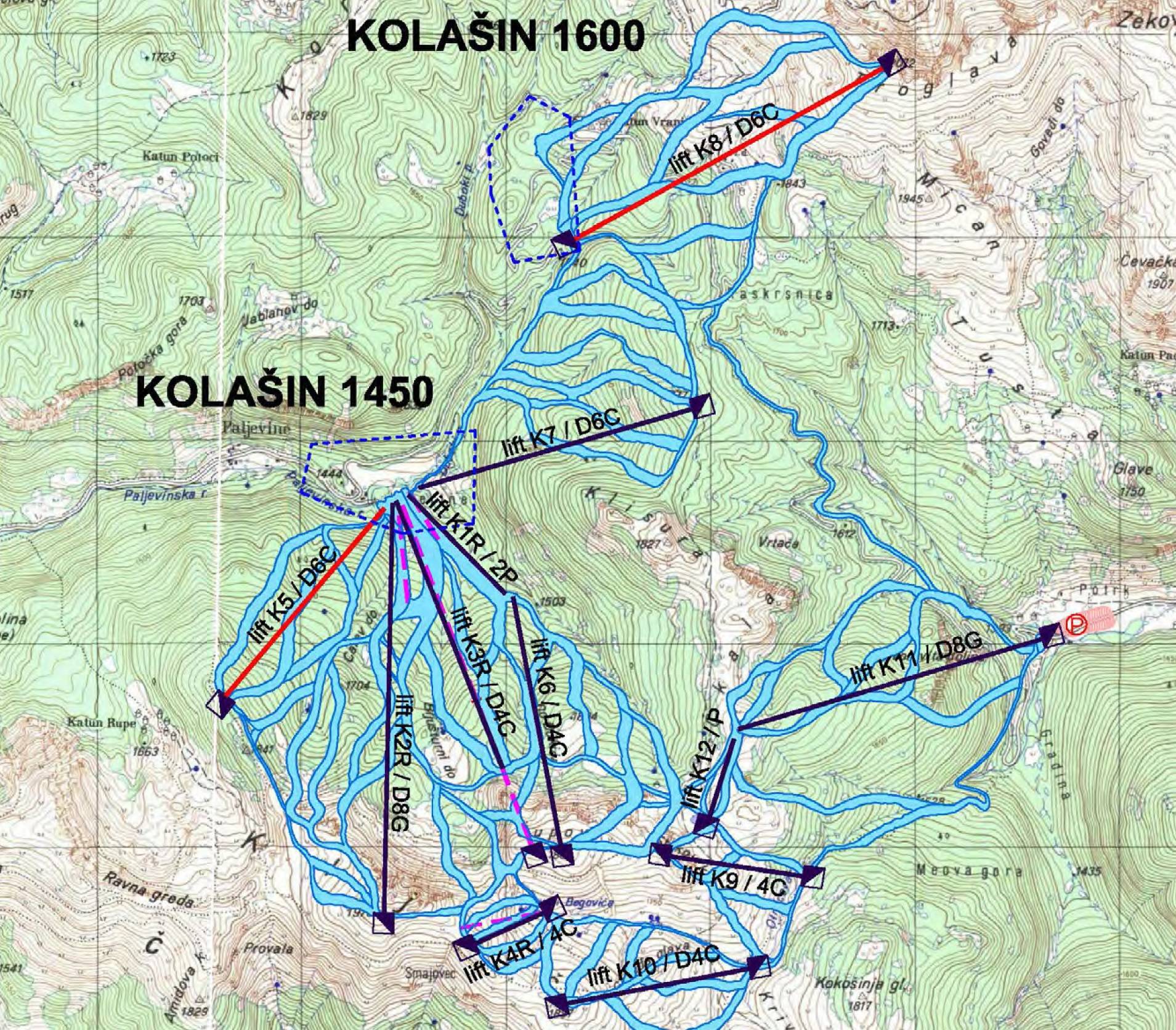Pistekaart Kolašin 1450/Kolašin 1600 seizoen 2024/2025