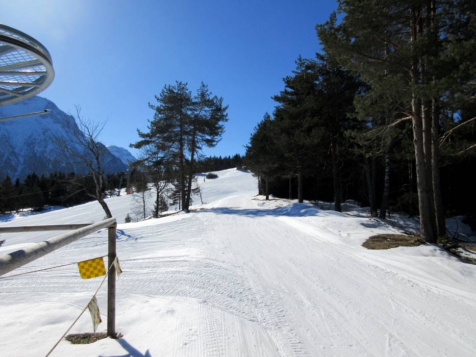Het skigebied strekt zich uit over de oostelijke bergkam van de hoge Kranzberg en biedt gevarieerde afdalingen met een prachtig uitzicht op het Karwendelgebergte.