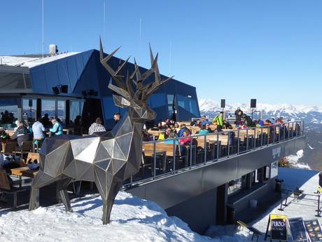 Het etablissement is een populaire après-ski ontmoetingsplek. Tip: Zirbenschnaps gemaakt van dennen uit de omliggende bossen.
