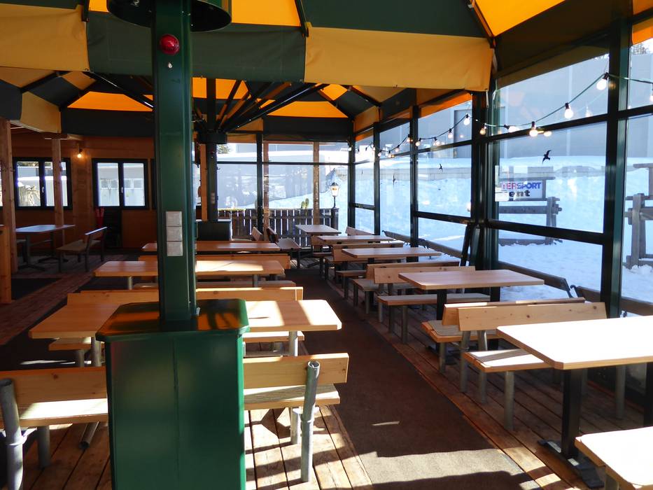 Het zelfbedieningsrestaurant ligt in het centrum van het skigebied.