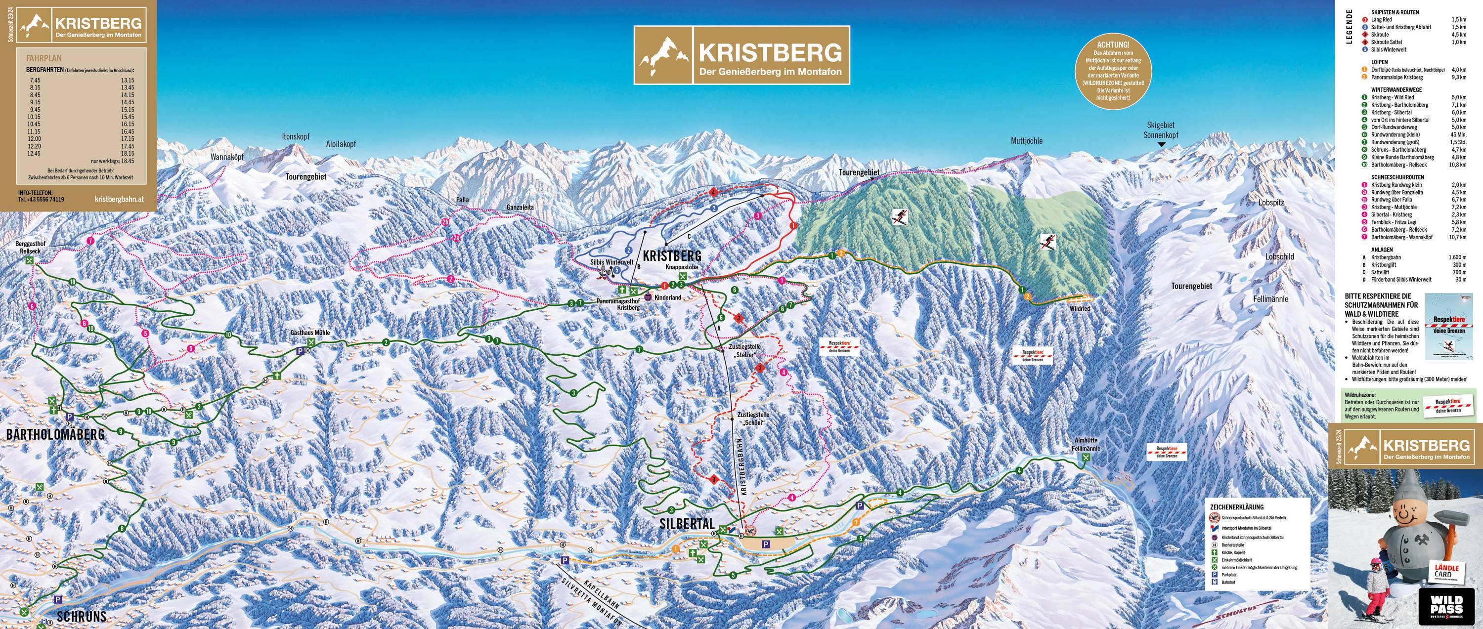 Oriëntatie (pistekaart, informatieborden, bewegwijzering piste) en veiligheid in het skigebied Kristberg – Silbertal