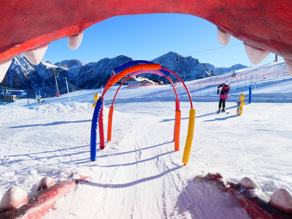 Bij de gondellift Miara vinden kinderen een mooie piste met leuke elementen.