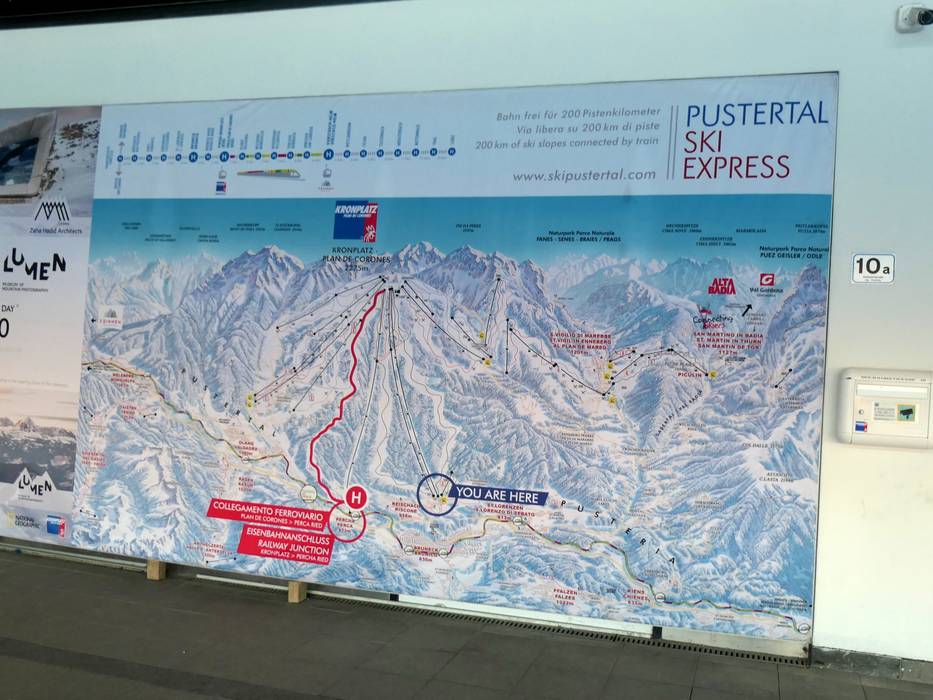 Oriëntatie (pistekaart, informatieborden, bewegwijzering piste) en veiligheid in het skigebied Kronplatz (Plan de Corones)