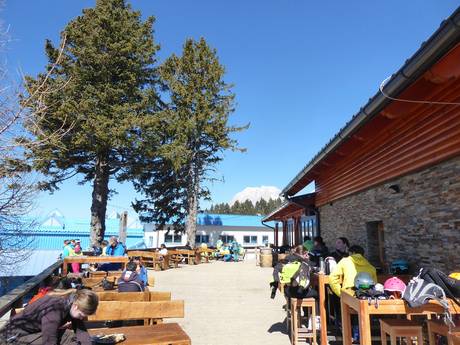 In het skigebied Krvavec kun je uitstekend pauzeren. Tussen Tiha Dolina, Gospinca en Kriška Planina vind je tal van gezellige hutten en restaurants met Sloveense specialiteiten. Ook in Hotel Krvavec, het hoogste hotel van Slovenië, kun je uitstekend terecht voor een pauze. Bij mooi weer trekken de zonneterrassen met een prachtig uitzicht.