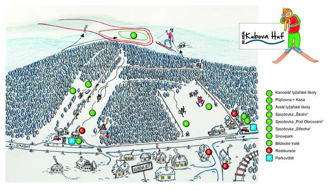 Kaart met route lift: Vlek Ski Školy