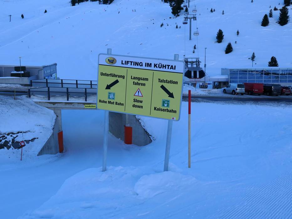 Oriëntatie (pistekaart, informatieborden, bewegwijzering piste) en veiligheid in het skigebied Kühtai