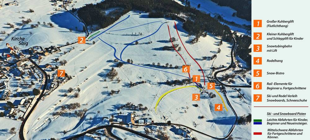 Pistekaart Kuhberglifte – Lenzkirch-Saig seizoen 2025/2026