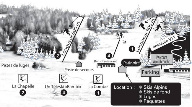 La Combe Saint-Pierre (0,2 km), Charquemont (2,2 km) Plaatsen bij het skigebied