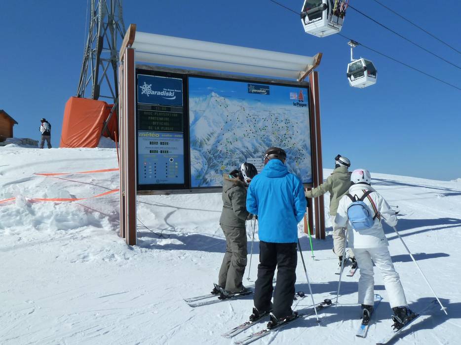 Oriëntatie (pistekaart, informatieborden, bewegwijzering piste) en veiligheid in het skigebied La Plagne (Paradiski)