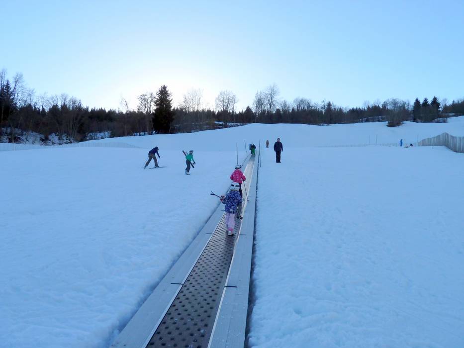 Met een aanvoerlint kom je vanaf het dalstation Flims in het Ami Sabi Schneewunderland. Hier zijn twee transportbanden en een tipi.