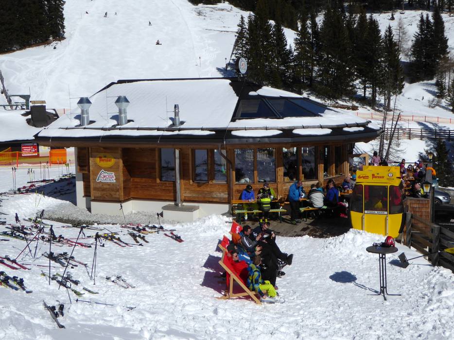 De gezellige, familievriendelijke skihut ligt wat verscholen, maar beloont de gasten met een knusse eetkamer en een prachtig panoramisch uitzicht vanaf het terras op 1.902 meter hoogte.