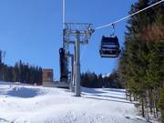Kabelbaan/gondellift in het skigebied Ladurns