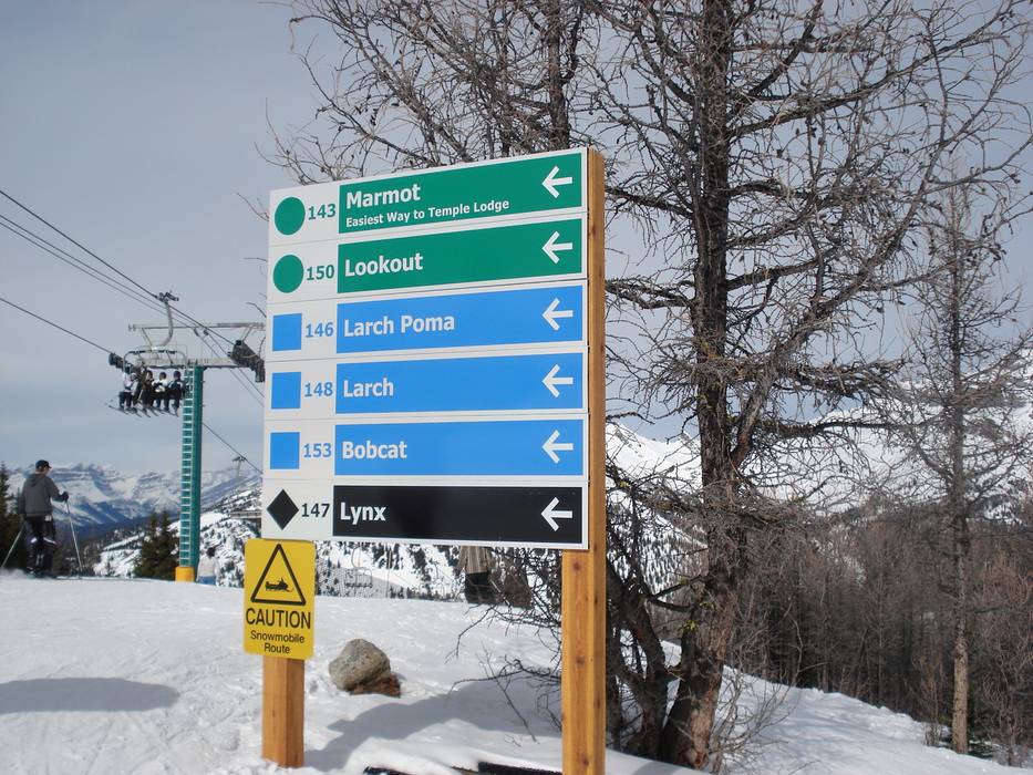 Oriëntatie (pistekaart, informatieborden, bewegwijzering piste) en veiligheid in het skigebied Lake Louise