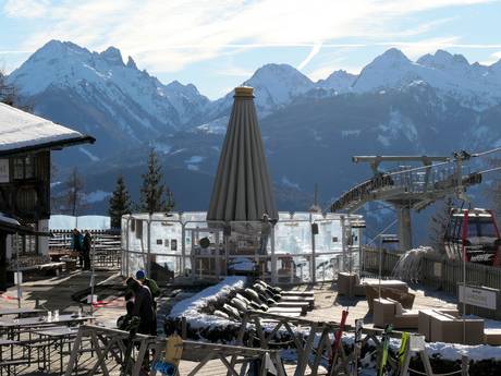 Voordat je met de gondelbaan naar het dal naar Predazzo gaat, kun je in de Baita Gardoné onder (kunstmatige) palmbomen in een ligstoel van de zon genieten of feesten in de Schirmbar.