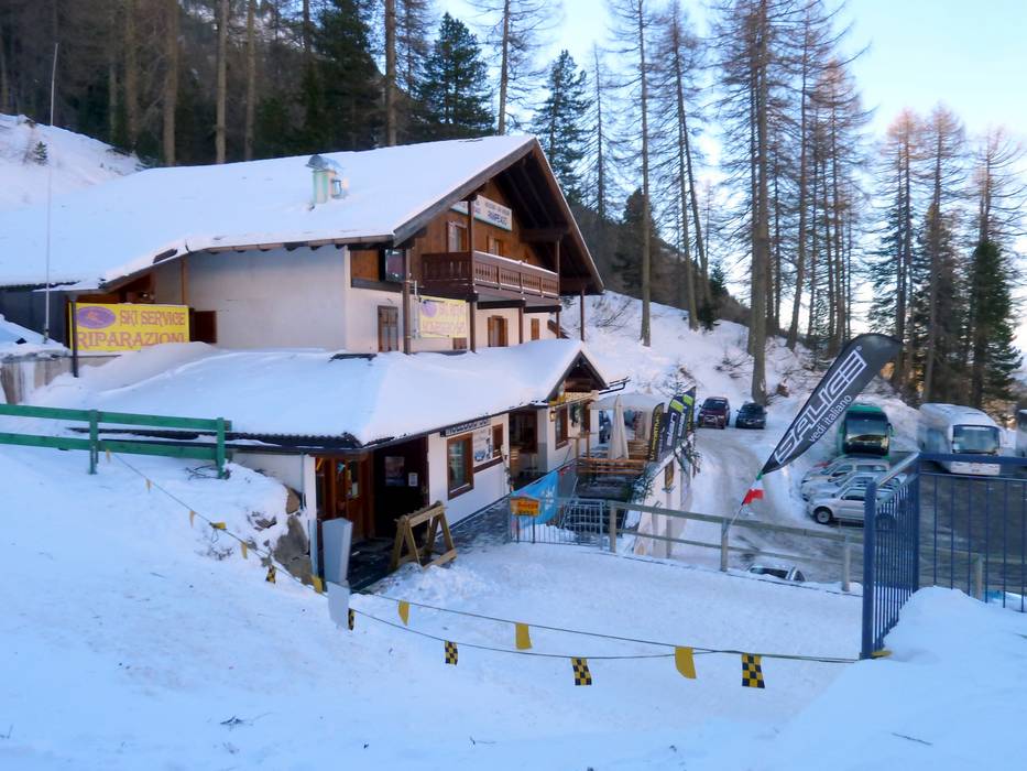 Bij het bergstation van de stoeltjeslift Latemar in Pampeago