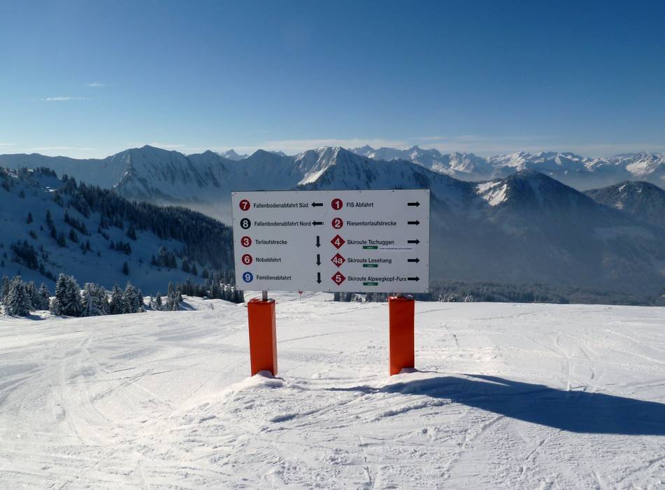 Informatieborden en bewegwijzering op de pistes