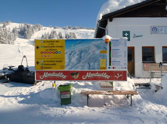 Bij de dalstations van de stoeltjesliften vind je gedetailleerde pistekaarten met informatie over de geopende liften en pistes. In het skigebied zelf is elke piste en skiroute gemarkeerd en bewegwijzerd.