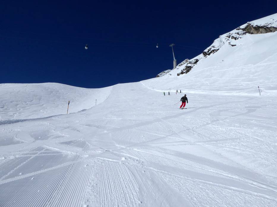 Zwarte afdaling onder de gondelbaan Gandegg-Hockenhorngrat