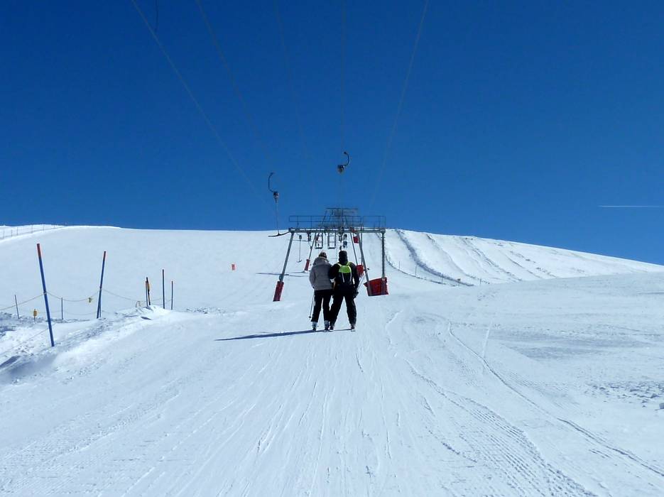 De sleeplift bereikt het hoogste punt in het skigebied Les 2 Alpes onder de Dome de la Lauze.