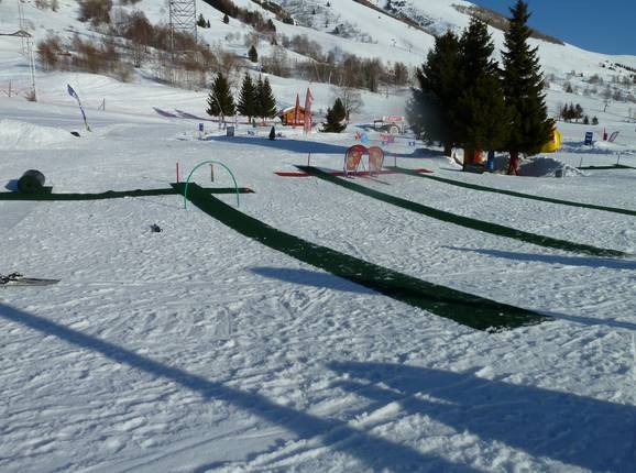 De Ecole du Ski Français biedt hier lessen aan voor kinderen vanaf 1 jaar – er zijn transportbanden, een sleeplift en veel spannend oefenmateriaal.