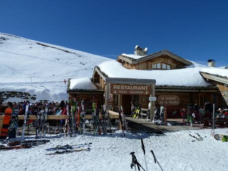In het skigebied Les 2 Alpes wordt veel waarde gehecht aan goede catering – je kunt gezellig plaatsnemen in bediende restaurants. Maar ook wie snel weer de ski’s op wil, vindt zelfbedieningsrestaurants en enkele snackbars bij de bediende restaurants. In het dorp zijn er nog tal van andere restaurants, die vaak slechts enkele meters van de pistes verwijderd zijn.