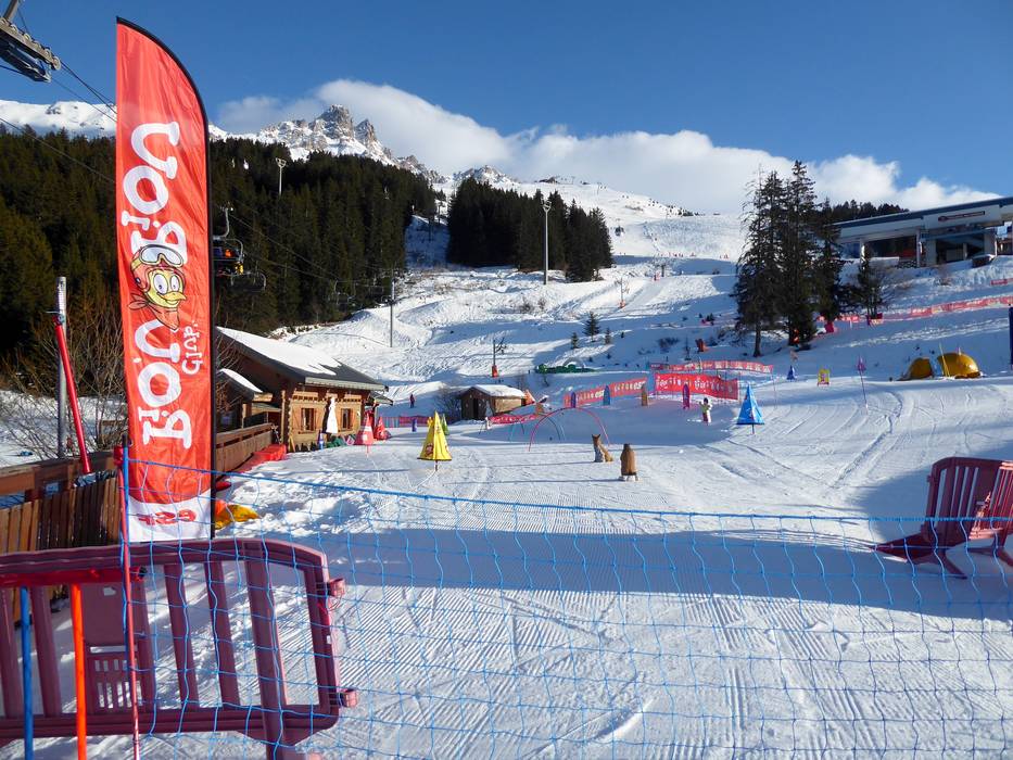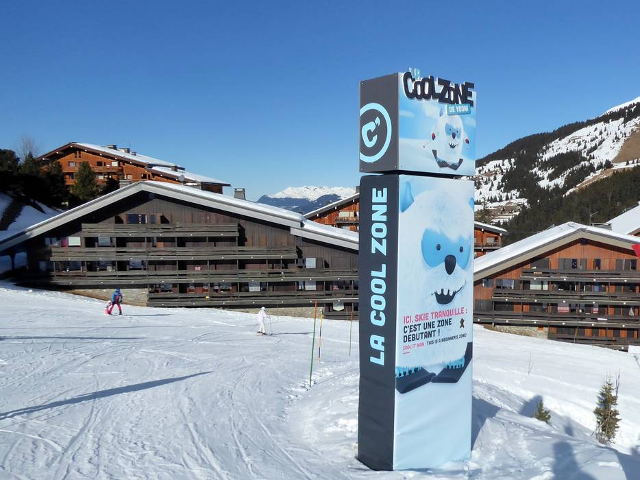 De gratis oefenweide met overdekte transportband en grappige figuren bevindt zich in Méribel Centre. Hier kunnen de kleintjes heerlijk oefenen en plezier maken in de sneeuw.