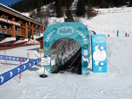 Direct in Val Thorens bevindt zich een groot kinderland met overdekte transportbanden. Hier kunnen de kleintjes in alle rust hun eerste bochten oefenen op lichte hellingen met obstakels. De skischool biedt hiervoor speciale kindercursussen aan.